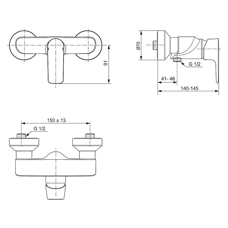 - Ausladung Brauseabgang: 41-46 mm