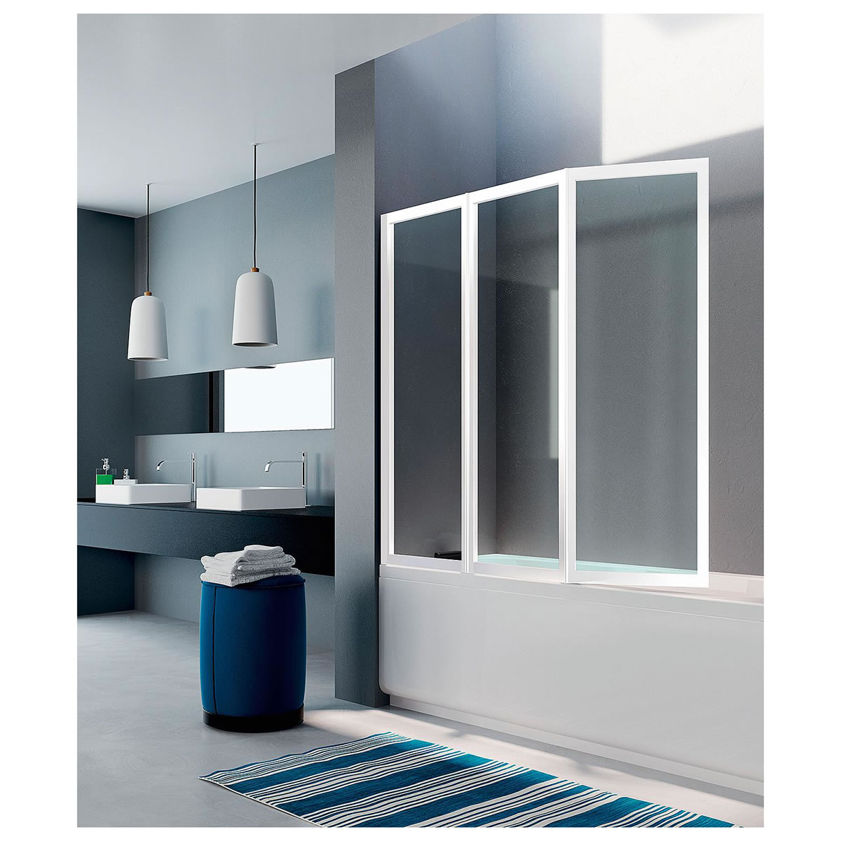 Evenes Badewannenaufsatz Starlight, Glas ETC, 3-teilige Faltwand - 1330 x 1400 mm x 3 mm