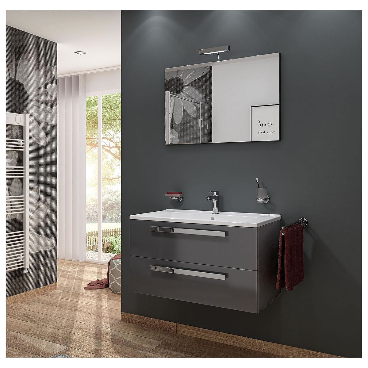 Badmöbel-Set EDIA Serie MAB, anthrazit Hochglanz
