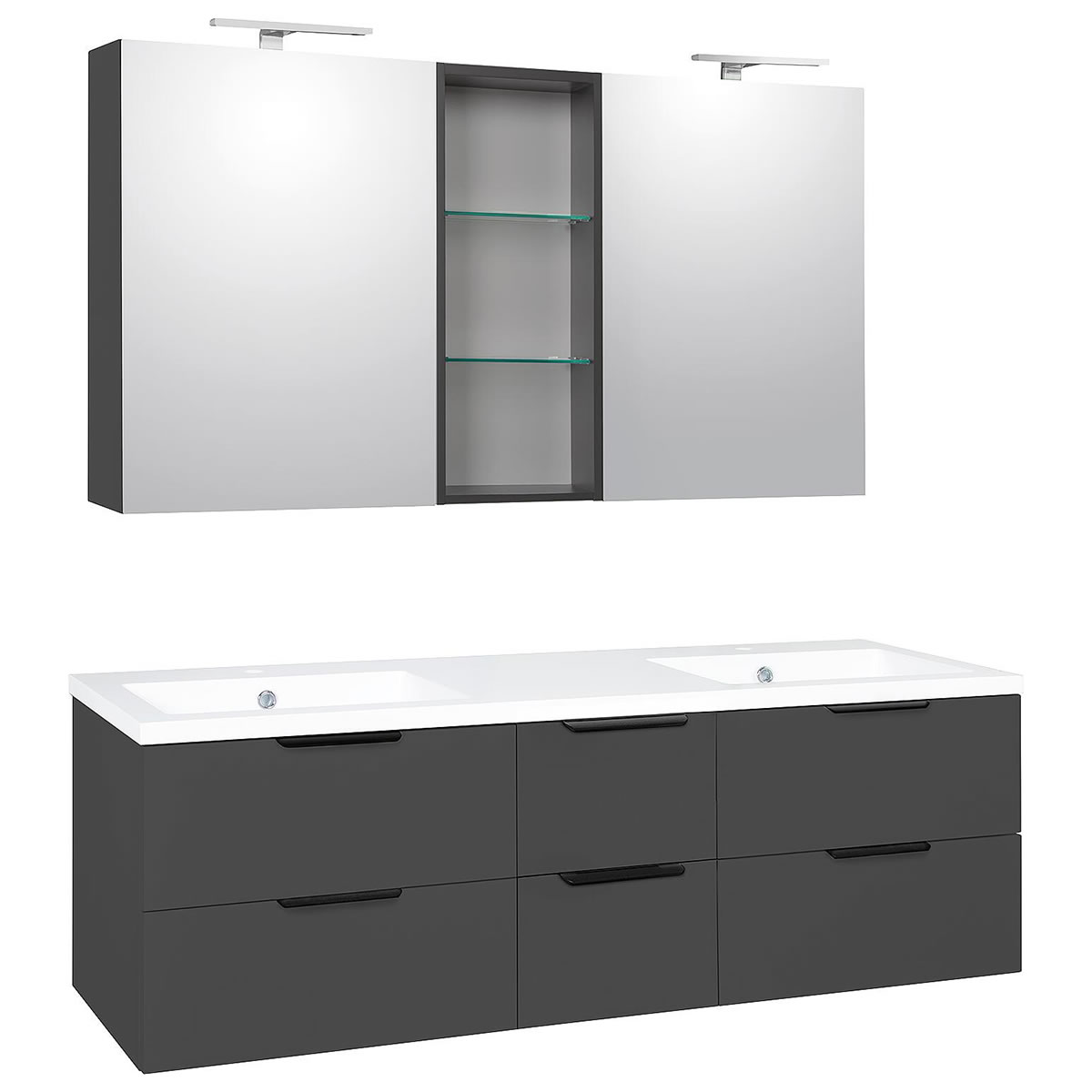 Badmöbel-Set LOSSA mit LED-Spiegelschrank anthrazit Hochglanz, 6 Auszüge, Breite 1550 mm