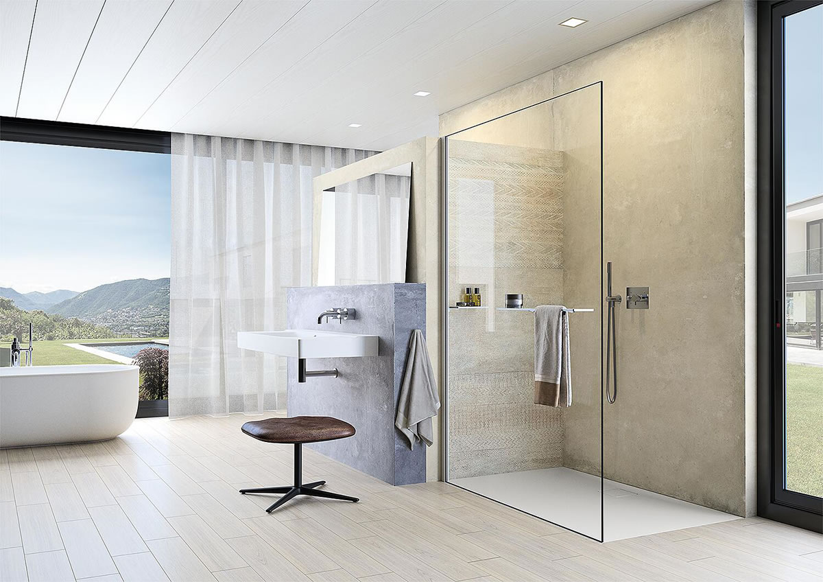 Der HÜPPE Mineralguss ist darüber hinaus besonders hautsympathisch, sehr angenehm und fußwarm zu betreten. Im mehrgeschossigen Wohnbau macht sich zusätzlich der Umstand bezahlt, dass der Wannenkörper schalldämmend wirkt. Das ist sowohl für den Nutzer selbst als auch für die Menschen in angrenzenden Räumen sehr angenehm und deutlich zu merken.