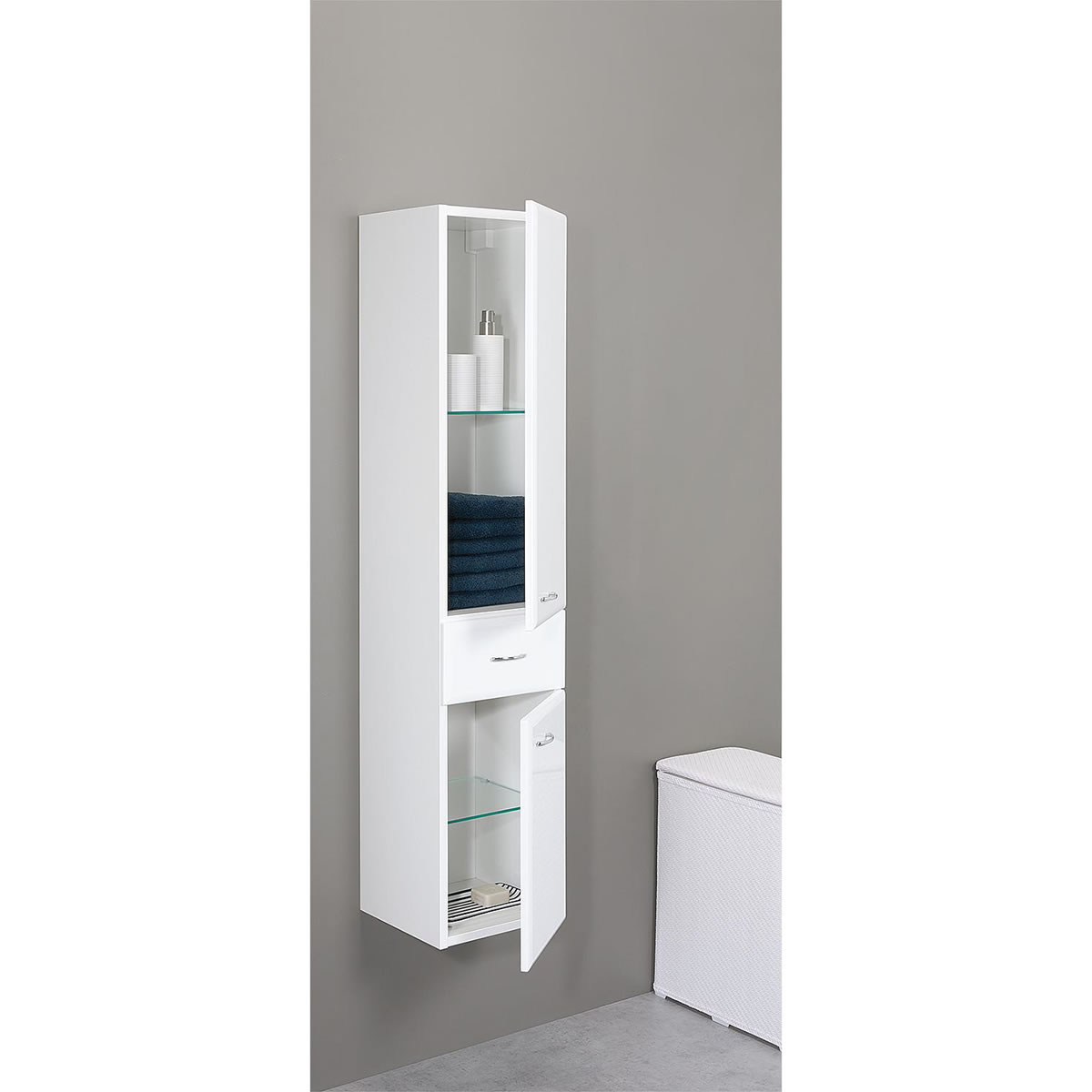Evenes Hochschrank Serie MAC, 2 Türen, 1 Auszug, weiß Hgl., Anschlag links - 300 x 1440 x 320 mm