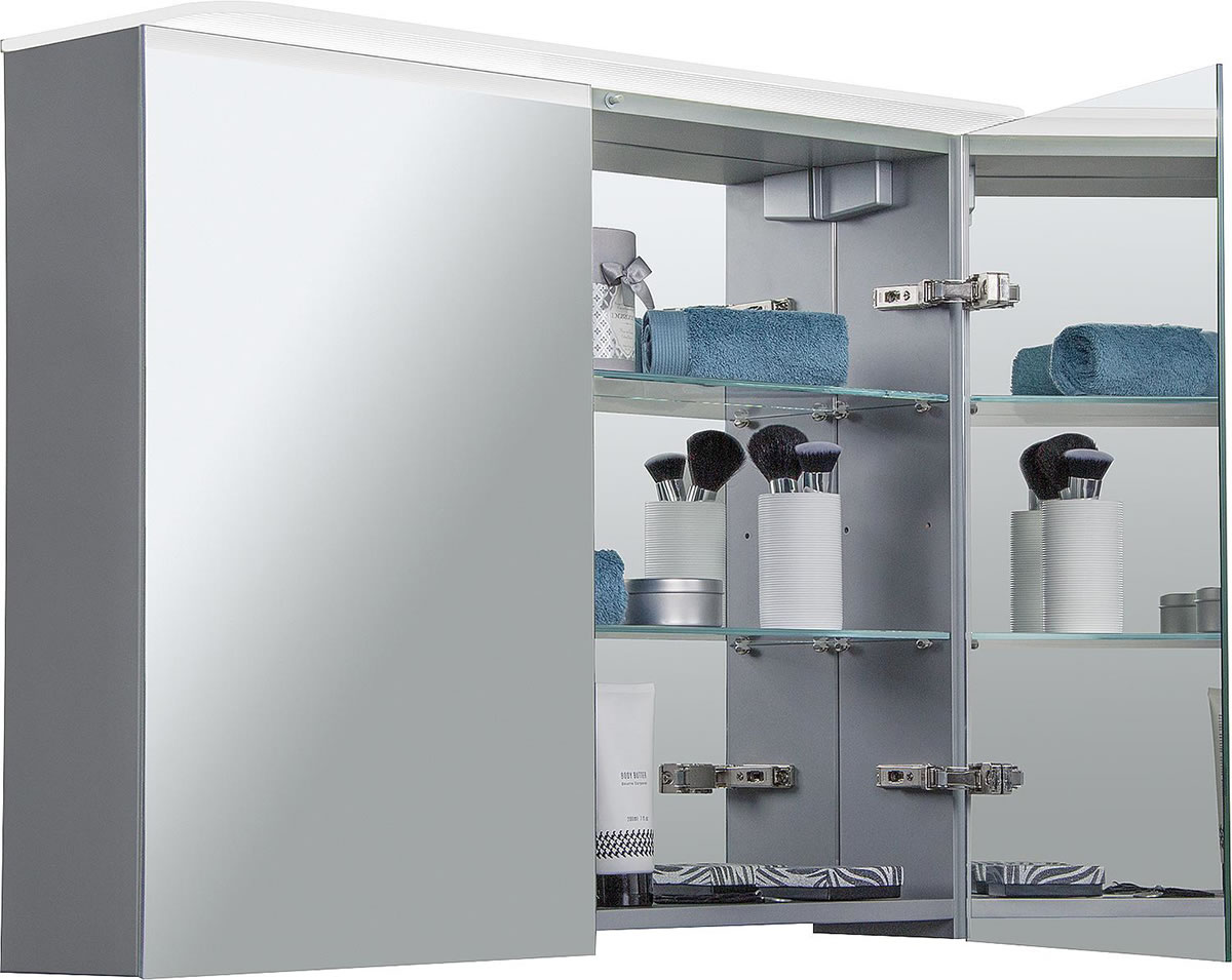 Spiegelschrank Blanda Alu-Optik, 2 Türen, 600 x 650 x 165 mm - 93 142 91
