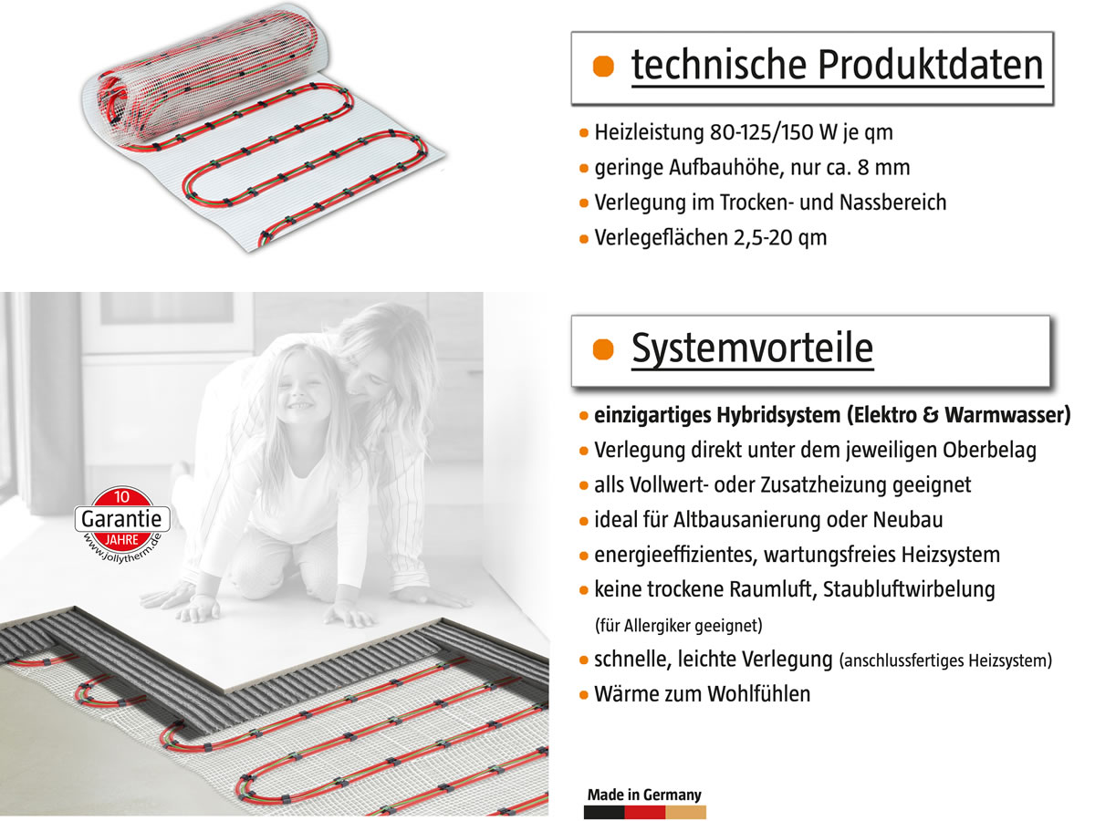 jollytherm Hybrid Fußbodenheizung Vario-Heat 15,0 m²