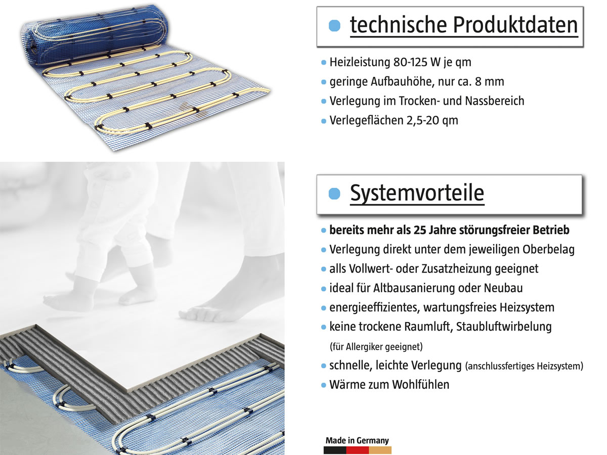 jollytherm Warmwasser Fußbodenheizung Aquaheat 20,0 m²