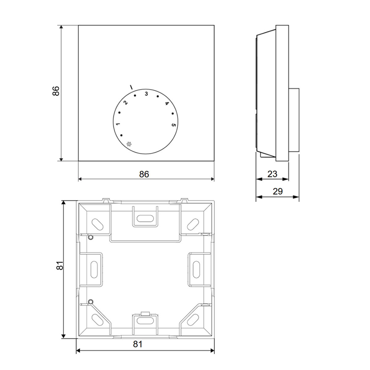 - Abmessungen (B x H x T): 86 x 86 x 29 mm