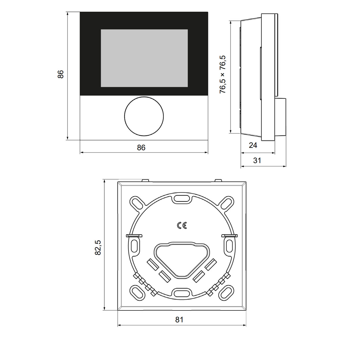 - Abmessungen (B x H x T): 86 x 86 x 31 mm