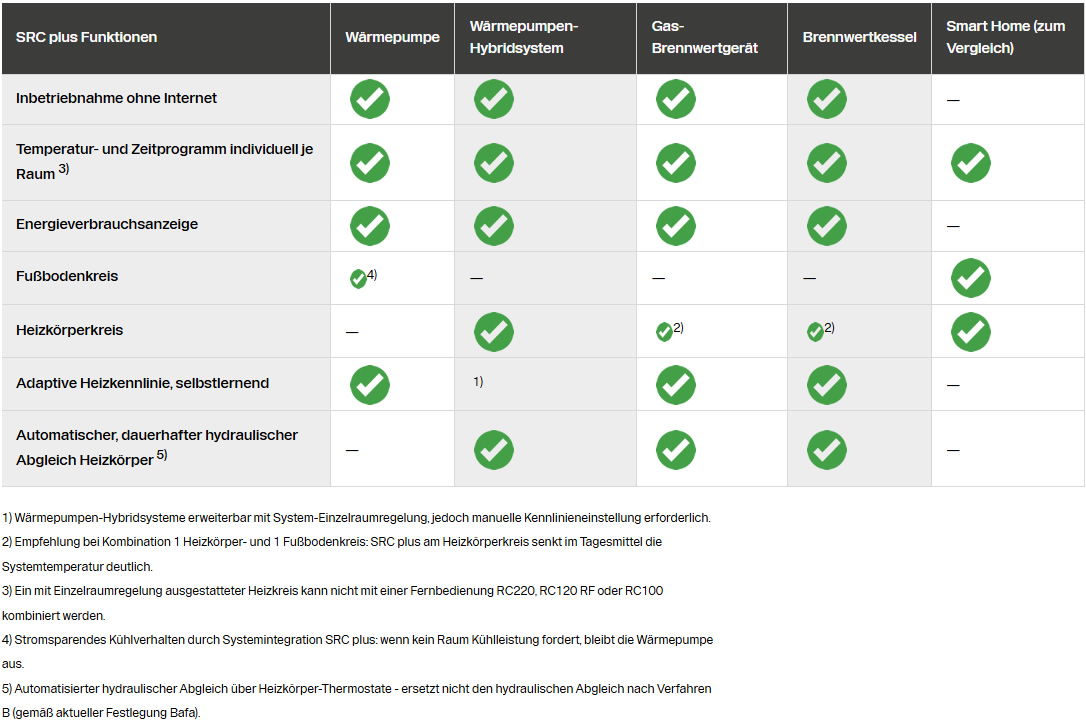 - Intelligenter Regelalgorithmus für Buderus Einzelraumregelung SRC plus, kombinierbar mit Buderus Brennwertgeräten mit System-Bedieneinheit Logamatic BC400.