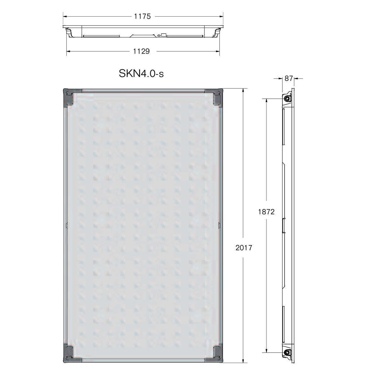 - Abmessungen (Höhe / Breite / Tiefe): 2017 x 1175 x 87 mm