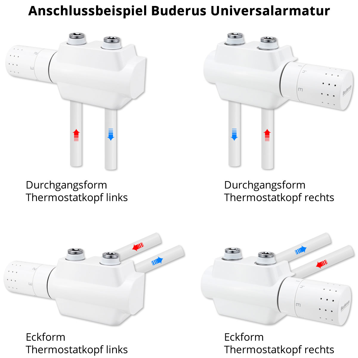 - Verwendung für Badheizkörper Therm Direct und Curve mit Mittenanschluss sowie Vertikal-Heizkörper CV