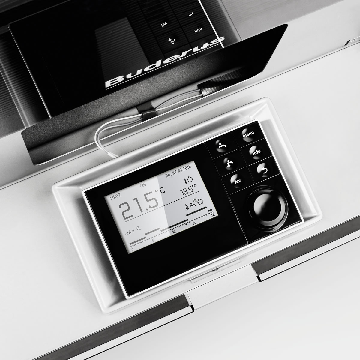 - Bedieneinheit Logamatic RC100H mit integriertem Feuchtefühler