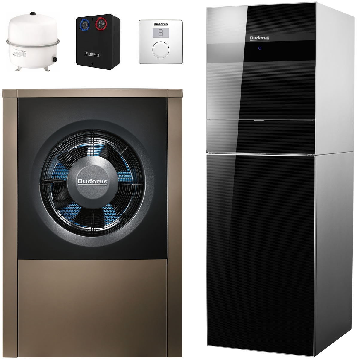 BUDERUS Wärmepumpenpaket Logaplus WLW196 iAR-1 mit Luft-Wasser-Wärmepumpe Logatherm WLW196i-8 AR T190 9kW/7,1kW reversibel mit Tower, Bedieneinheit RC100 H, 1 Heizkreis-Set ungemischt, bestehend aus: