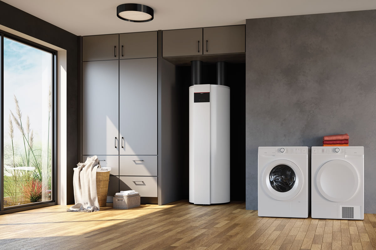 - Warmwasser-Wärmepumpe für Außenluft- und Umluftbetrieb.