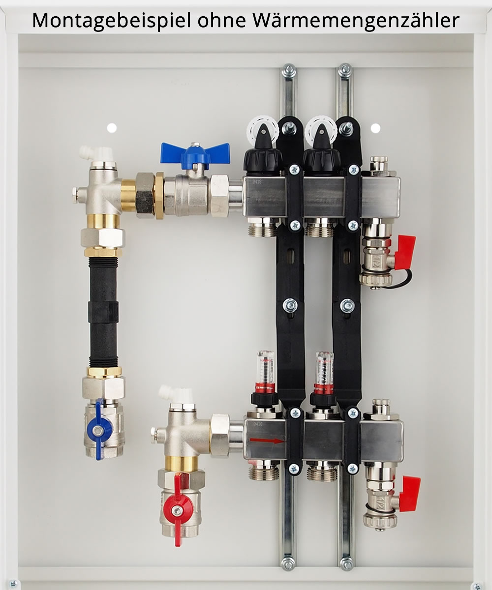 Bitte Montagehinweise beachten (Tausch der Verteilerbalken bei Fußbodenheizung - Rücklauf oben - Vorlauf unten)