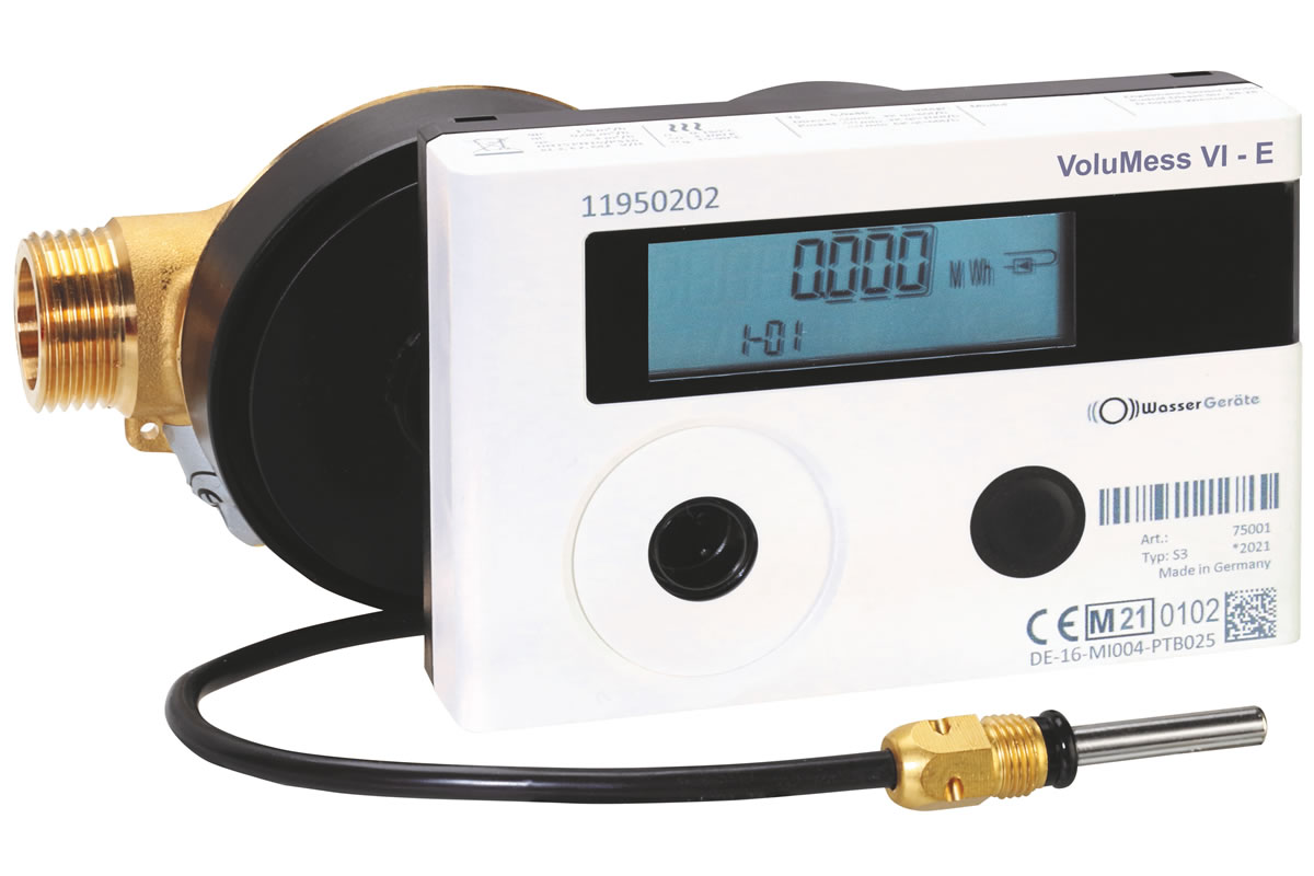 Kompakt-Wärmezähler VoluMess VI Komfort - Qn 1,5 m³/h - Fühler-Ø 5,0 mm - 3/4" AG - Baulänge 110 mm - inkl. Beglaubigungsgebühr