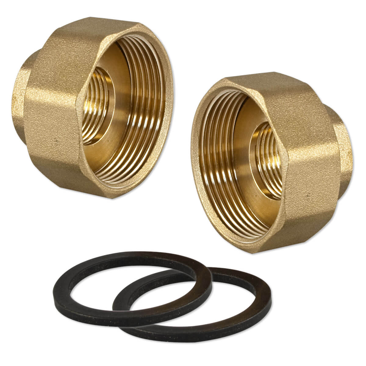 1 Satz Messing Gewindefitting-Übergangsverschraubung 1 1/2'' (Überwurf) x 1'' IG inkl. Dichtringen