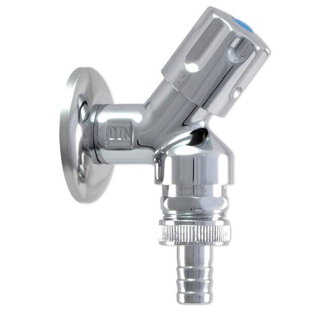 Geräte-Anschlussventil 1/2'' - poliert verchromt, mit Rosette, Durchlaufbelüfter und Rückflußverhinderer