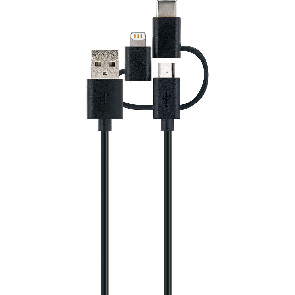 - 1 m Kabel USB-A/Micro-USB und 2 Adapter, USB-C und Apple Lightning