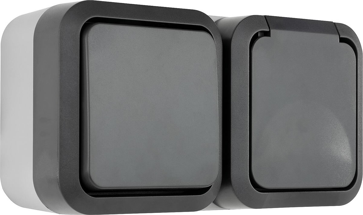 AquaStorm Kombination Aus-/Wechselschalter mit Steckdose waagr. Aufputz grau - 81 x 152 x 60 mm