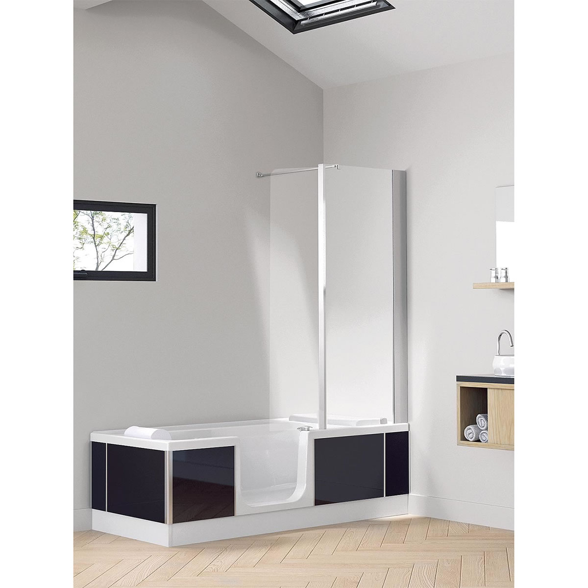 - Badewanne mit festen Abmessungen und Einstiegstür aus transparentem Glas
