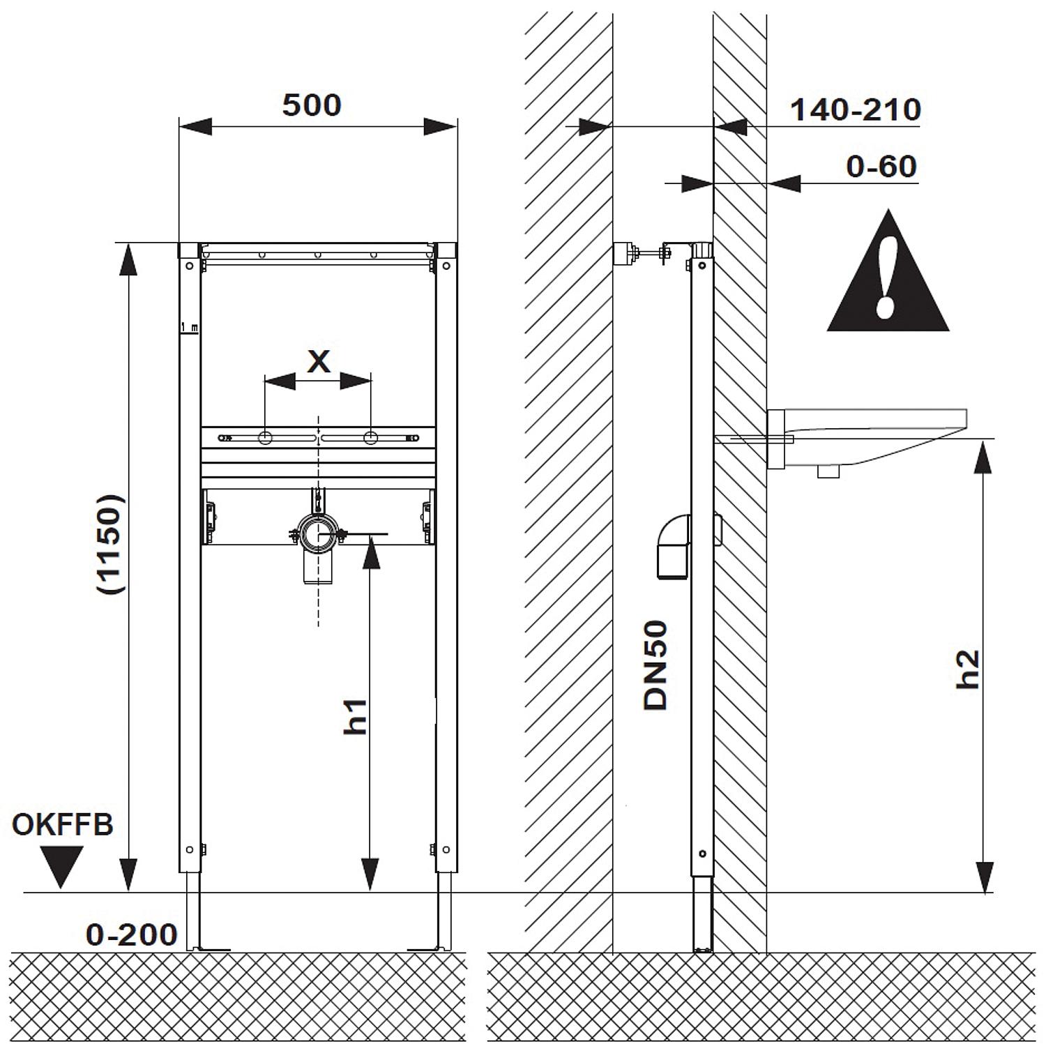 - Selbsttragend für die Vorwandmontage sowie die Montage in Ständerwänden
