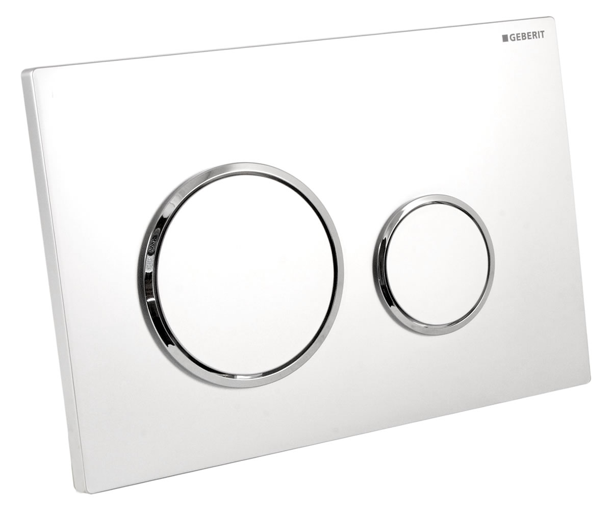 Neuartige verchromte Ringe um die Tasten sorgen für einen formvollendeten Look. Sigma20 ist mit zwei unterschiedlich großen runden Tasten für die Zwei-Mengen-Auslösung ausgestattet. Wassersparen in seiner schönsten Form.