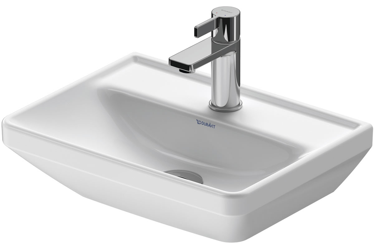 Handwaschbecken Duravit D-Neo 450 x 130 x 335 mm, ohne Überlauf, 1 Hahnloch mittig, weiß - 0738450041