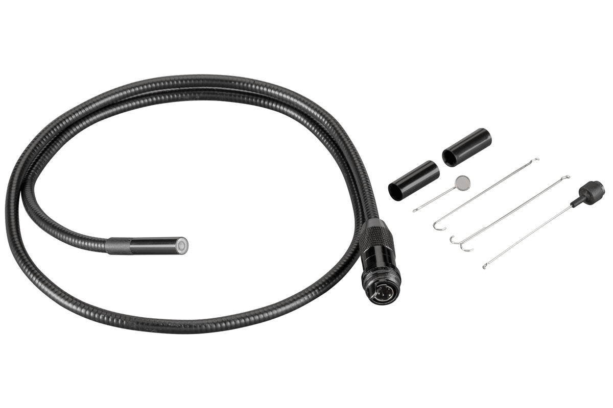 • Kamera-Kabelsatz Color 8-1 mit 1 m formbarem Schiebekabel und Aufsetzspiegel, Aufsetzhaken, Aufsetzmagnet