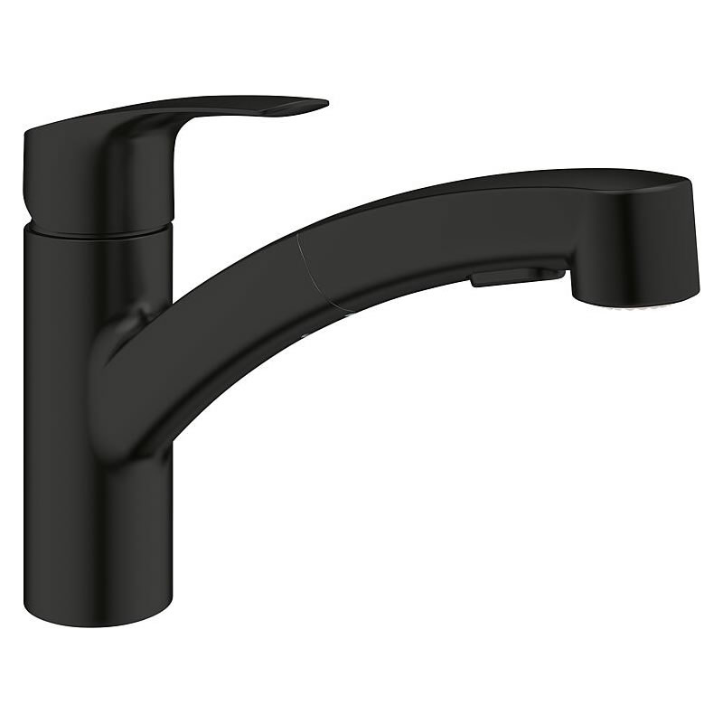 Grohe Spültischmischer Eurosmart mit herausziehbarer Geschirrbrause, Ausladung 227 mm, matte black