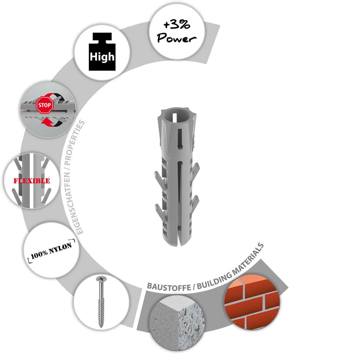 - Der flexible Dübelhals passt sich dem Bohrloch an
