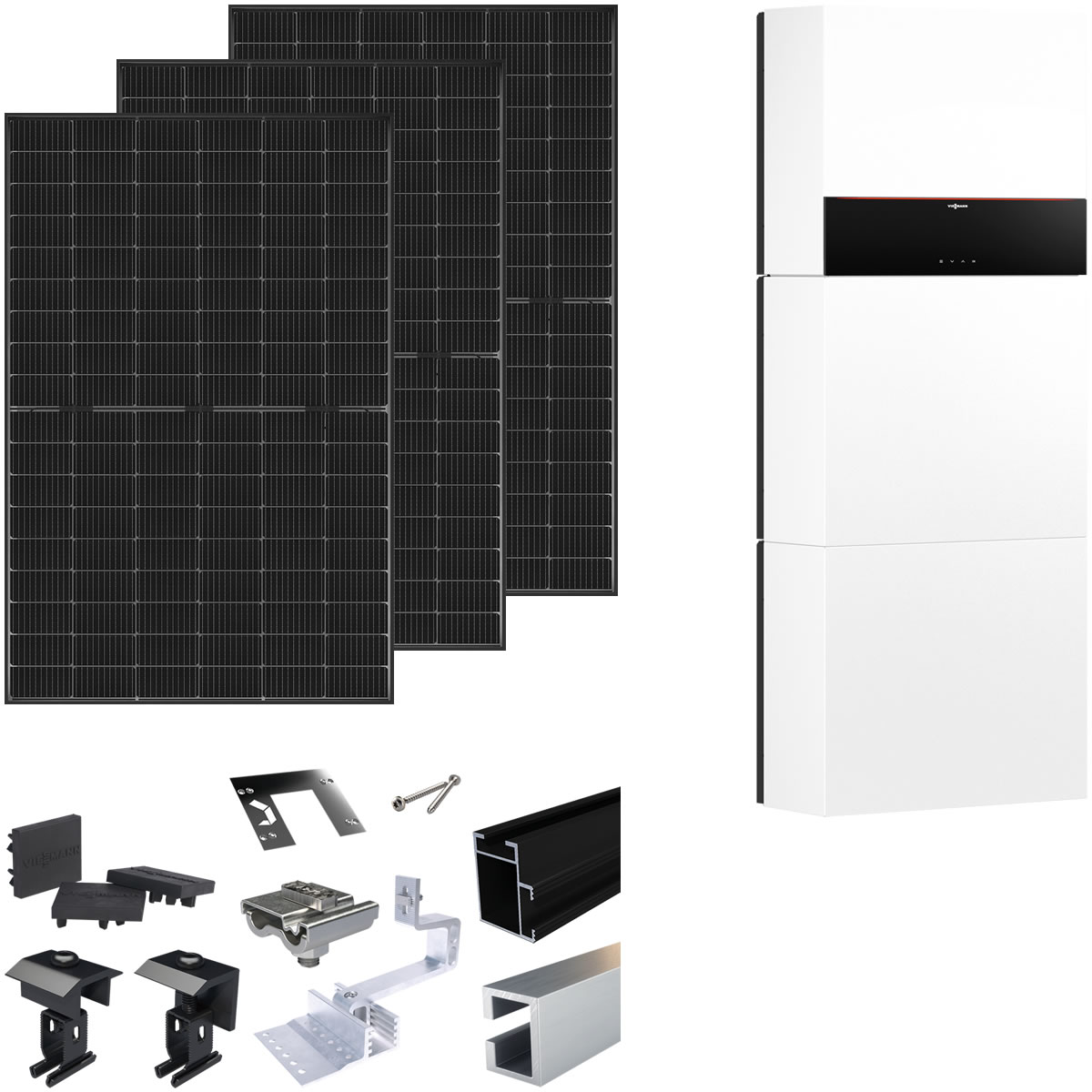 Viessmann PV-Paket M mit 22 Modulen Glas-Glas black frame + 10 kWh Stromspeicher Vitocharge VX3 & Montagesystem Aufdach - Z032039