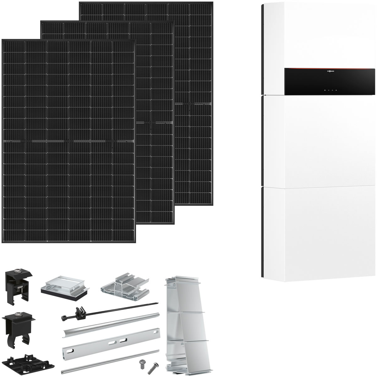 Viessmann PV-Paket S mit 18 Modulen Glas-Glas black frame + 10 kWh Stromspeicher Vitocharge VX3 & Montagesystem Flachdach Süd - Z032058