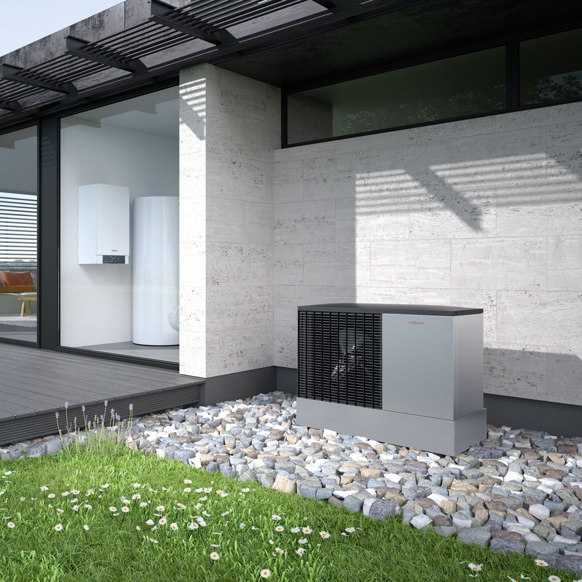 Höchste Effizienz auf engstem Raum. Dank innovativer Technik und optimal aufeinander abgestimmter Systemkomponenten gehört die Vitocal 200-A zu den leisesten Wärmepumpen ihrer Bauart.