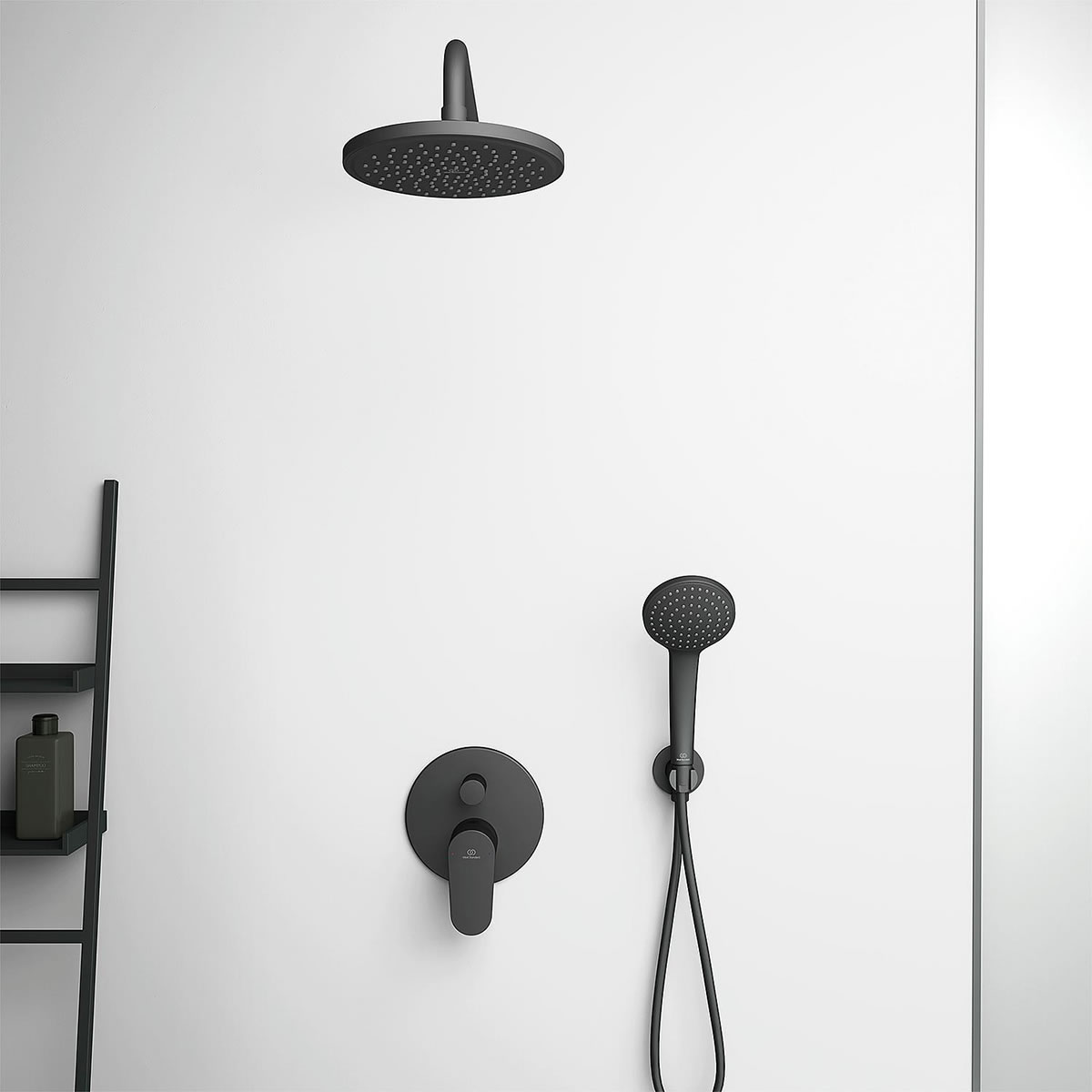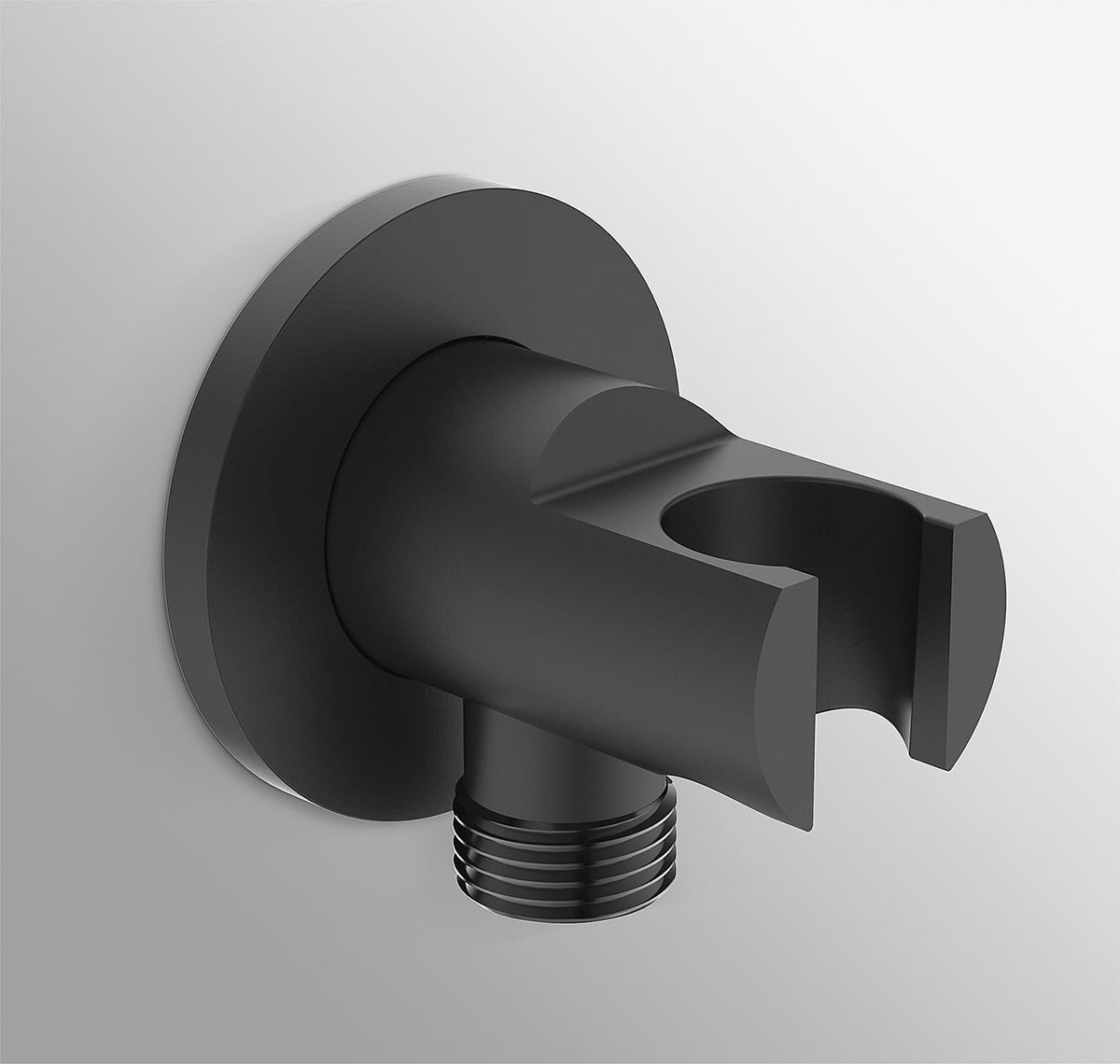 Ideal Standard Wandanschlussbogen mit Brausehalter Idealrain Round, schwarz matt