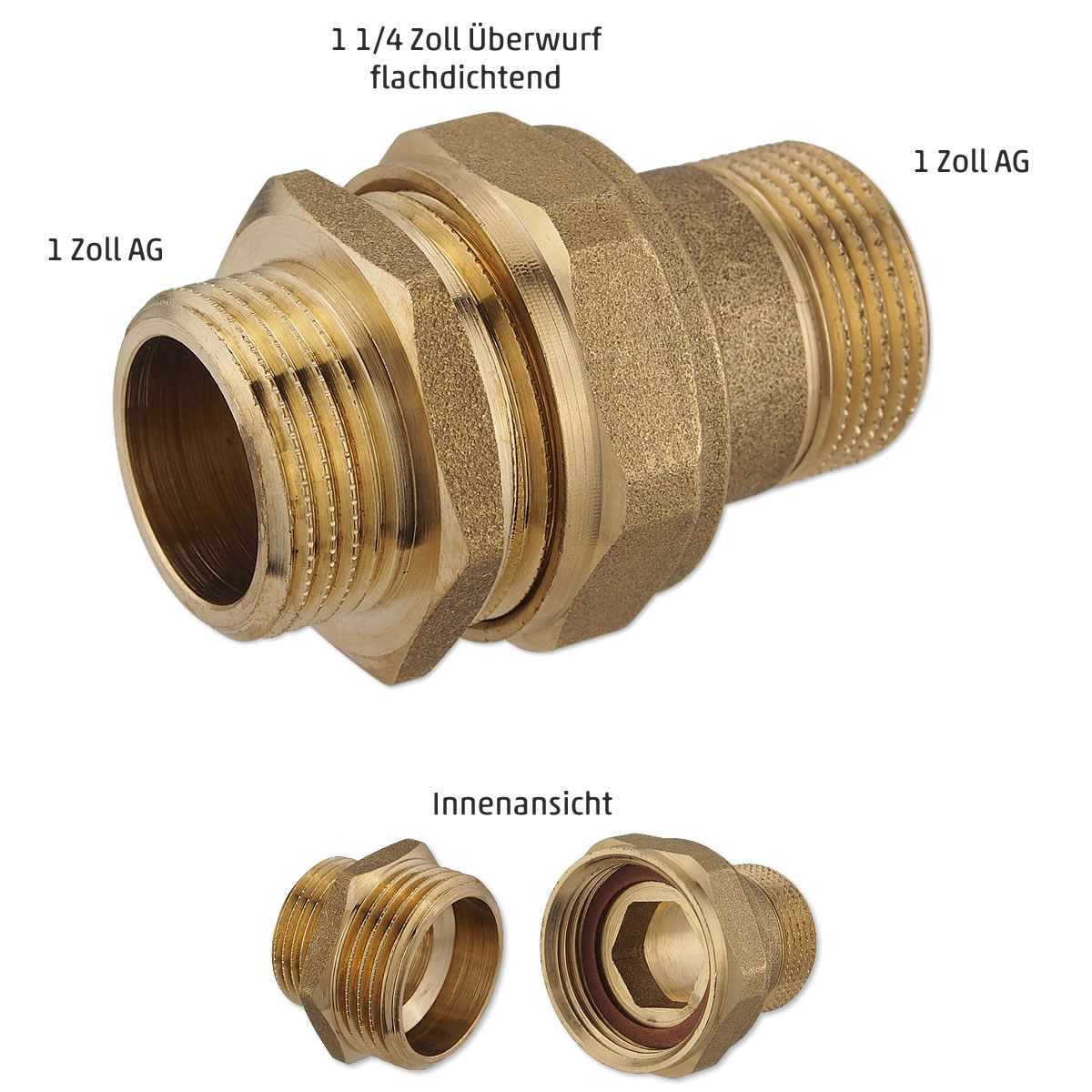 Messing Gewindefitting-Verschraubung 1'' AG x 1'' AG - flachdichtend
