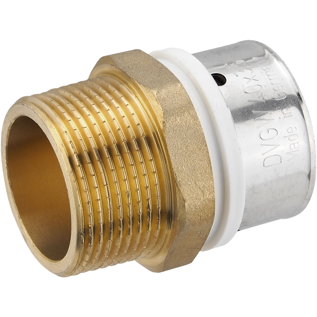 - Eine Edelstahlpresshülse mit Kontrollsichtfenster garantiert den richtigen Sitz des Rohres im Fitting.