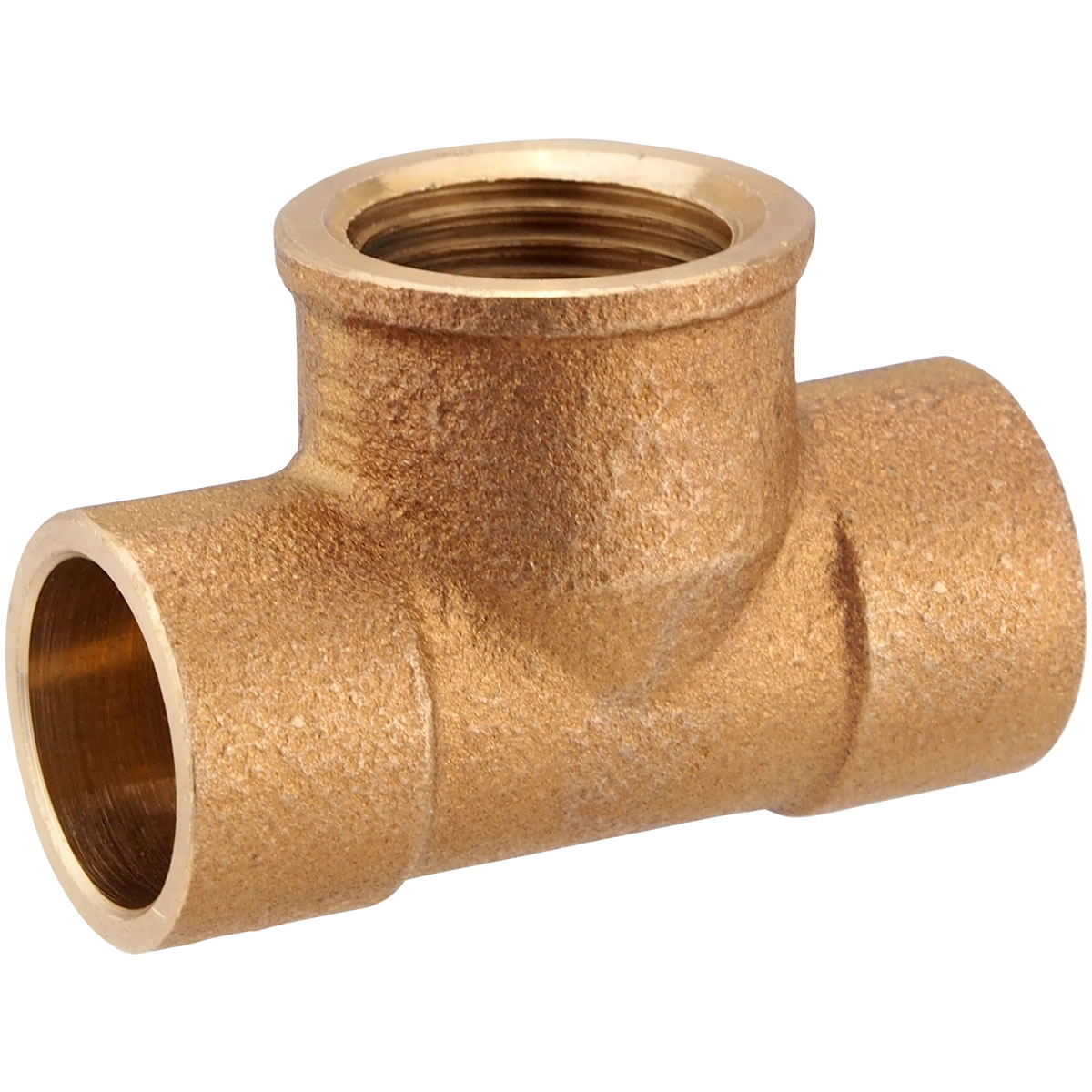 Rotguss-Löt-T-Stück - 22 mm x 1/2'' IG x 22 mm - mit DVGW-Zulassung